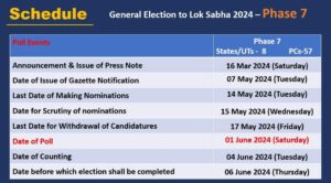 वर्ष 2024 लोकसभा चुनाव सात चरणों में किया जाएगा जिसकी सूची कुछ इस प्रकार है कृपया सभी पॉलीटिकल पार्टी व निर्दलीय चुनाव आयोग के द्वारा जारी की गई लिस्ट को ध्यान से देखें कौन से राज्य में किस दिन चुनाव होना है, कब विड्रोल की तारीख है, कब स्नूटनी की तारीख है, किस समय नामांकन का नोटिफिकेशन जारी होगा, किस समय नामांकन भर सकेंगे कृपया दी गई सूची सभी देखें।