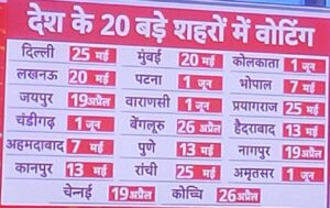 दिल्ली के विज्ञान भवन में भारतीय चुनाव आयोग ने लोकसभा चुनाव की तारीखों का किया ऐलान 7 चरण में होंगे चुनाव 4 जून 2024 को आएंगे नतीजे। दी गई सूची सभी देखे।